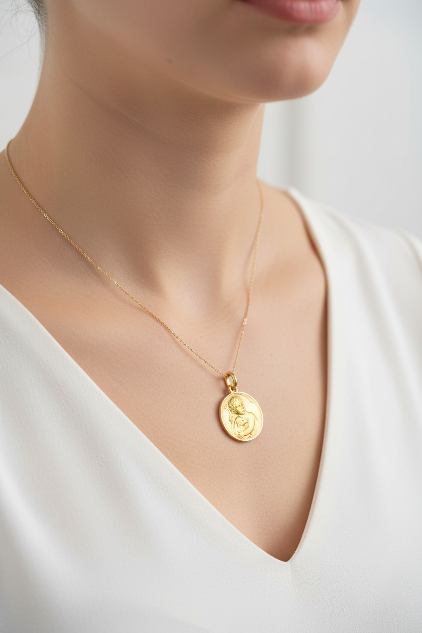 Esta medalla representa a Jesucristo, figura central de la fe cristiana, símbolo de amor, sacrificio y redención. Ya sea en la forma del Niño Jesús, del Cristo Sufriente o del Cristo Glorificado, encarna la presencia divina y la esperanza de salvación para todos los creyentes.