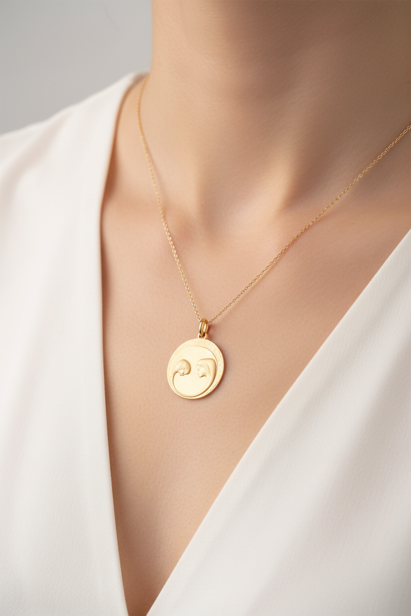 Esta medalla celebra a María como la "Divina Madre", destacando su papel único como madre de Cristo y su poderosa intercesión ante Dios. Símbolo de pureza, amor maternal y gracia celestial, encarna la ternura y la protección que se ofrece a los creyentes. Este diseño invita a confiar en la Virgen como refugio espiritual y guía en la fe.